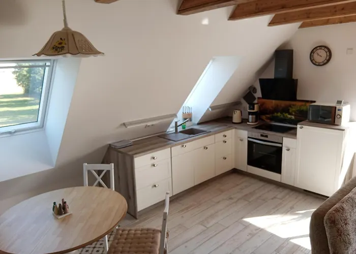 A fully furnished kitchen is provided at the apartment Guests can also take a bus at Seegel bus station, set only 0.8 km away, to explore the rest of Pegau.